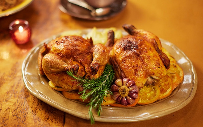 Experimente preparar um molho de laranja com o caldinho que se formou na assadeira.